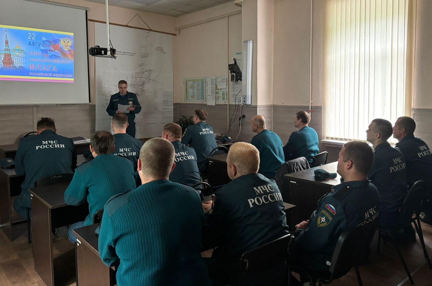 В филиалах ФГУП «ВГСЧ» проведены торжественные построения с поднятием Российского флага, а также проведены занятия с личным составом по истории государственных символов страны.
