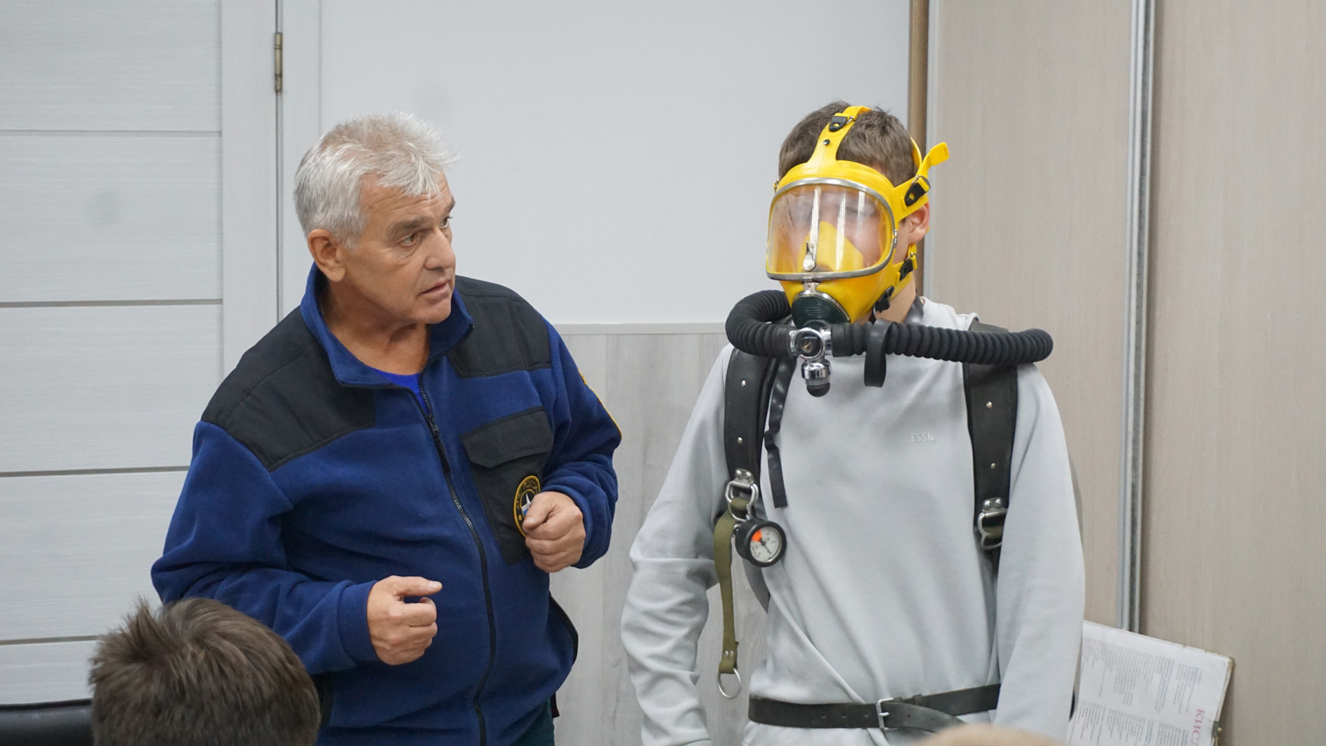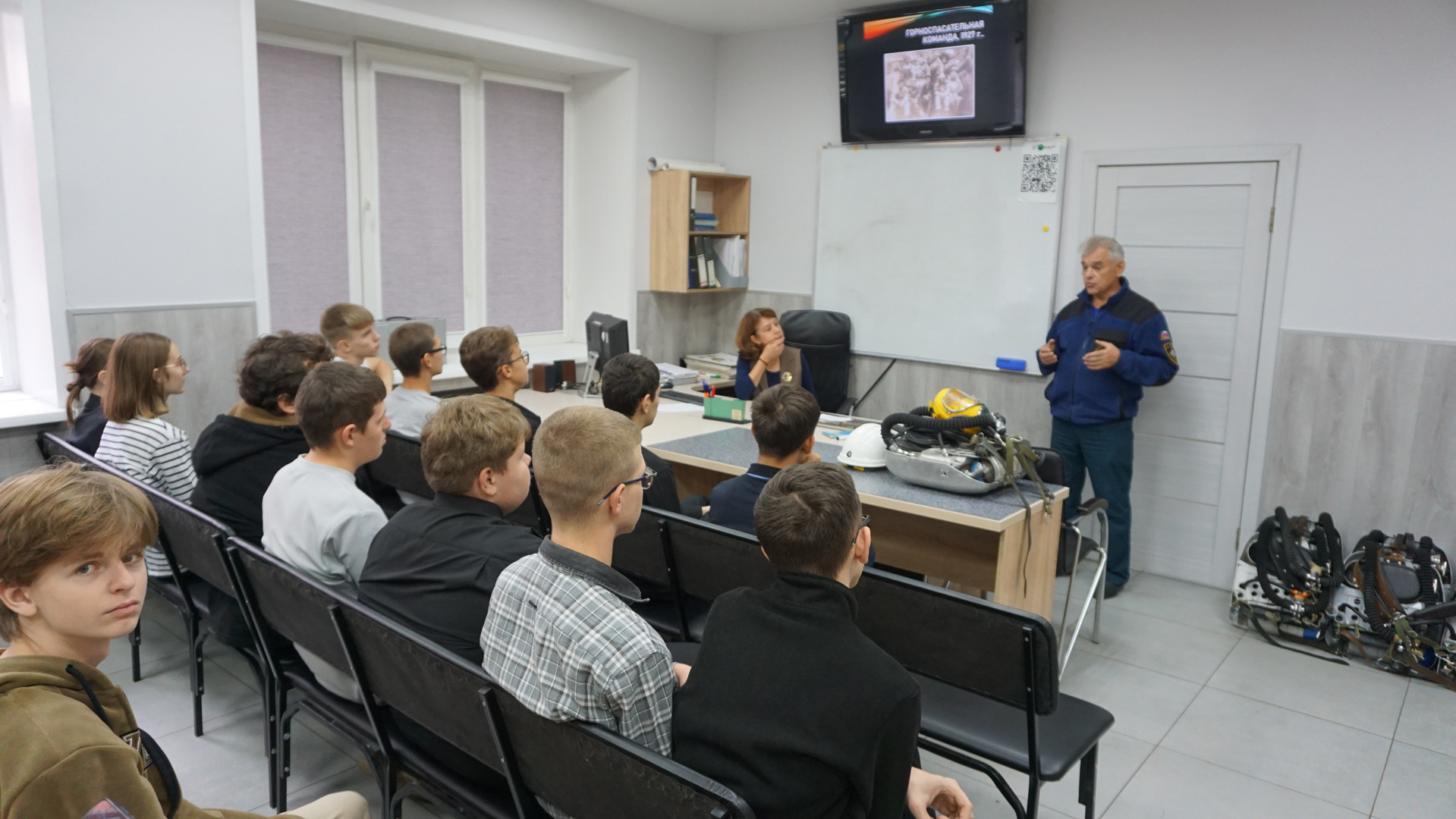 Работники подразделения рассказали ребятам об истории развития горноспасательного дела в России и о профессии «Горноспасатель», продемонстрировали горноспасательное оборудование, применяемое при ликвидации последствий аварий, оказание первой медицинской помощи пострадавшим.