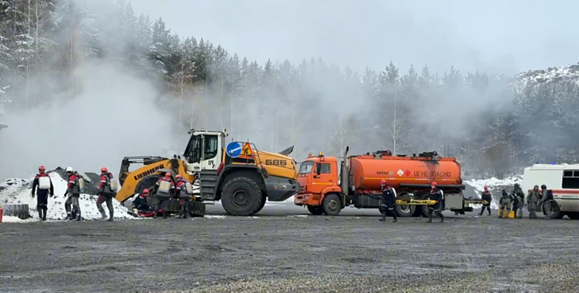 Водитель погрузчика смог доложить о происшествии диспетчеру филиала. На месте ЧС был создан оперативный штаб, который поручил вспомогательной горноспасательной команде приступить к тушению БелАЗа, разбору горной породы и оказанию помощи пострадавшим водителям.