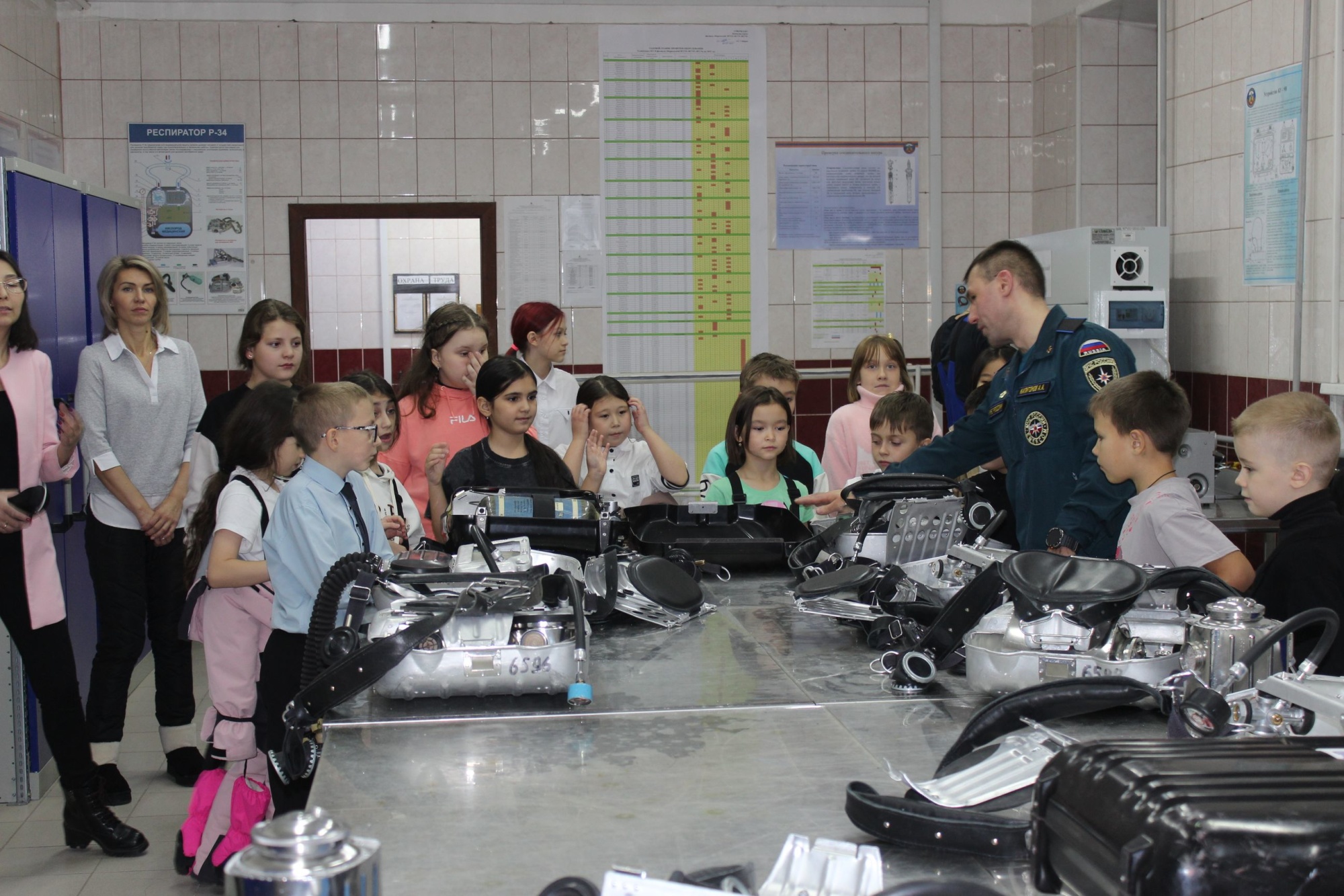 В Учебном центре филиала «Норильский ВГСО» ФГУП «ВГСЧ» побывали группы школьников 3 и 4 классов, где смогли ознакомиться с работой горноспасателей, осмотреть оборудование, необходимое им в работе и ощутить себя в роли горноспасателя при надевании на себя дыхательных аппаратов.