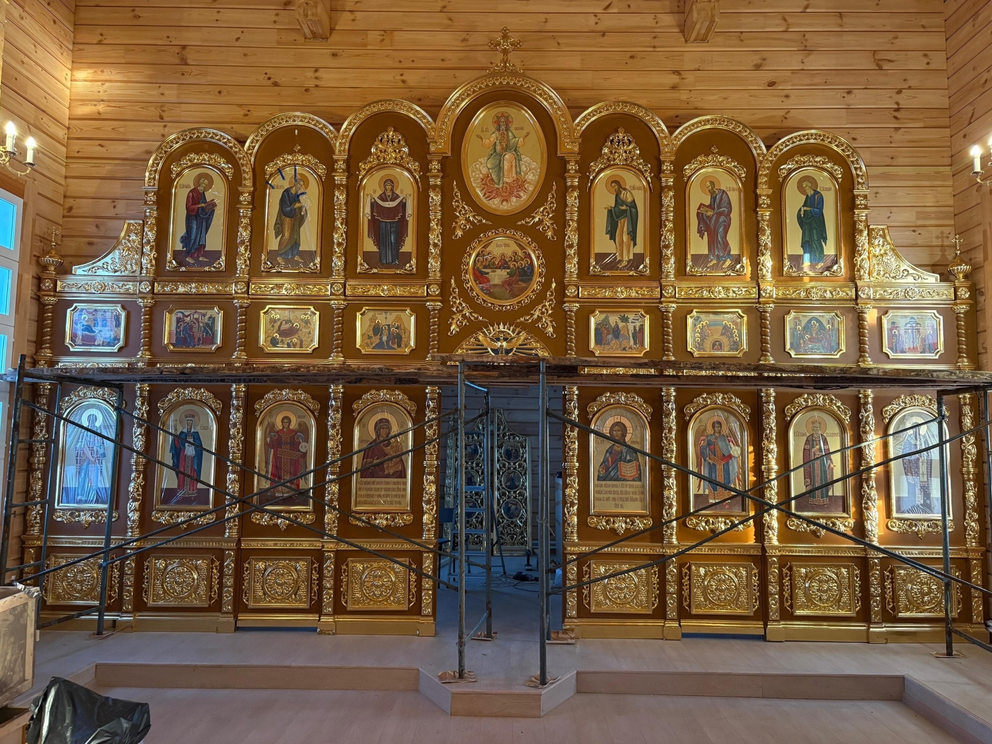 Горноспасателями были выполнены работы по выгрузке из контейнера и доставке в храм иконостаса и элементов утвари храма; сборка и установка иконостаса и основного освещения храма (две люстры и паникадило); расстановка элементов утвари храма.