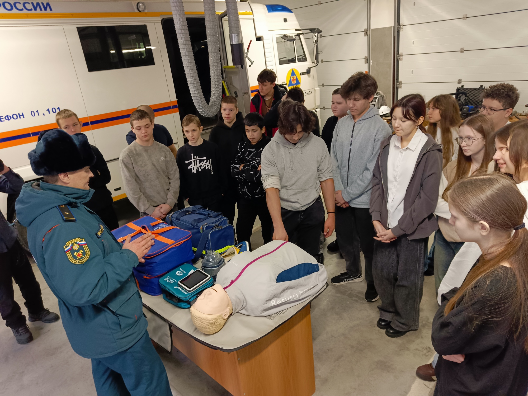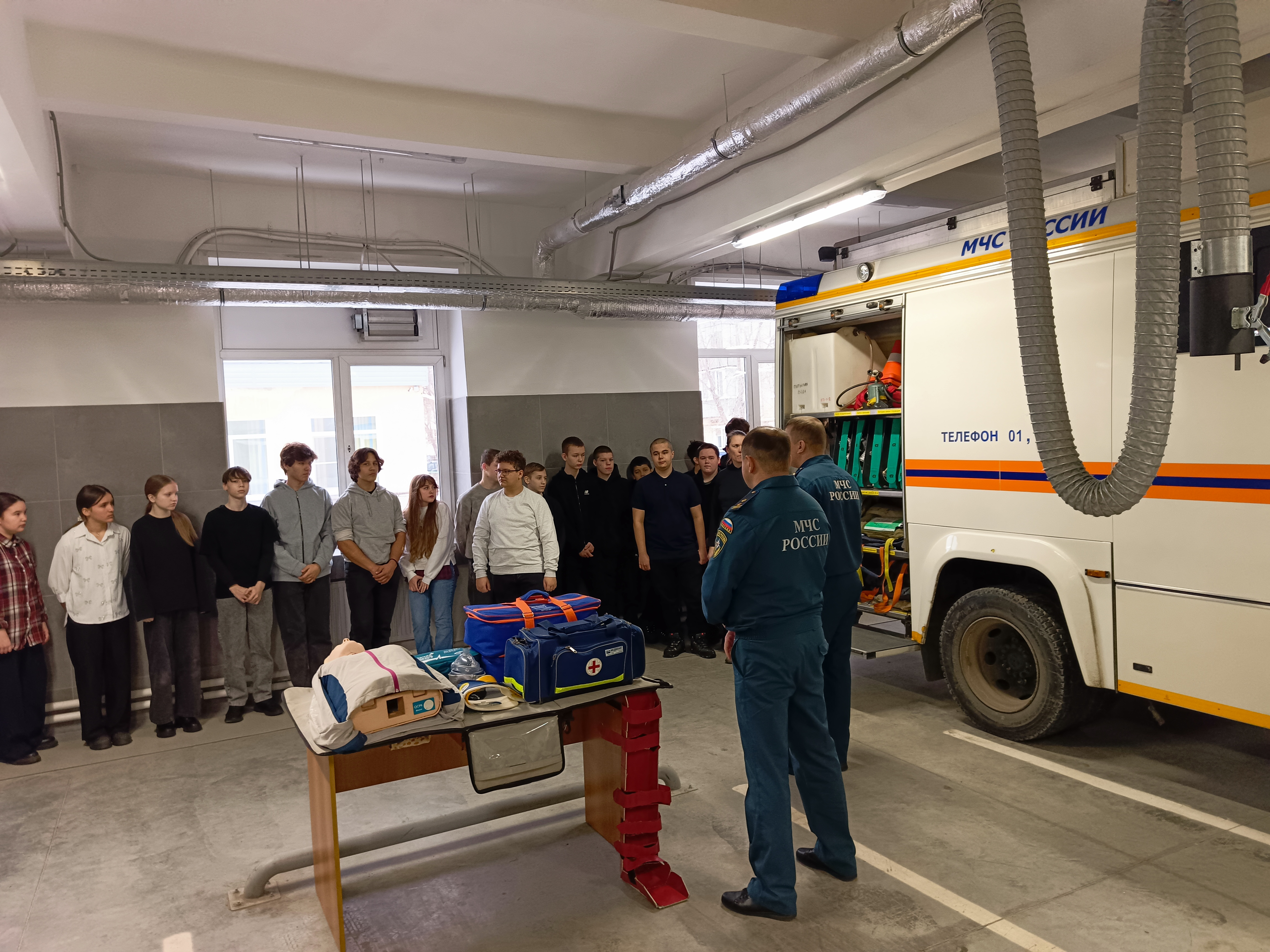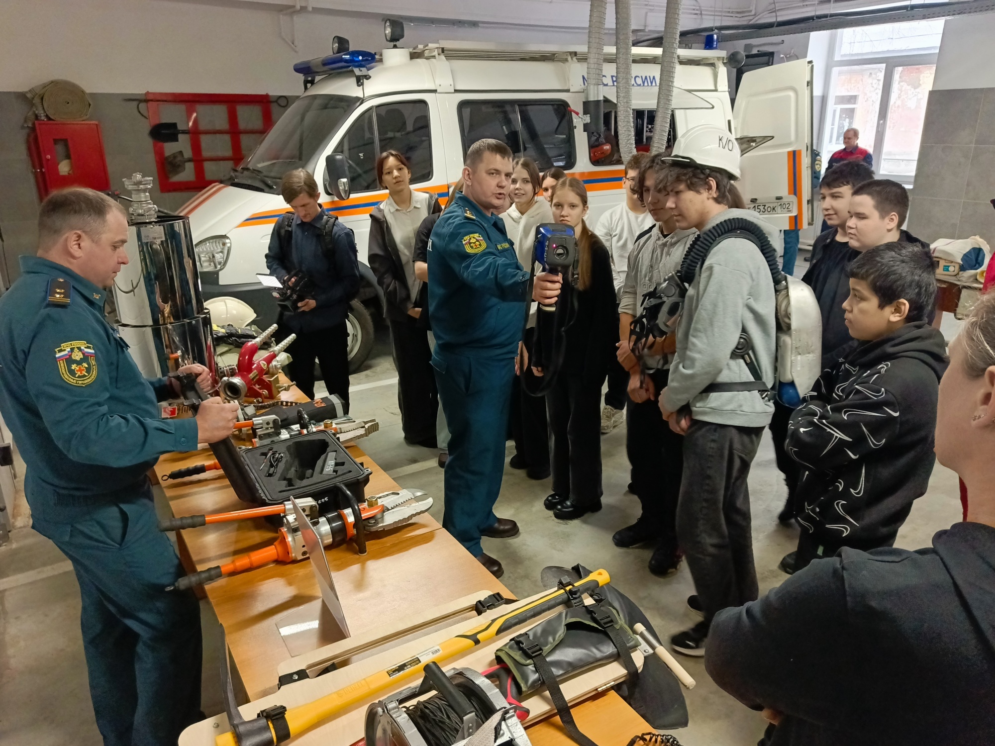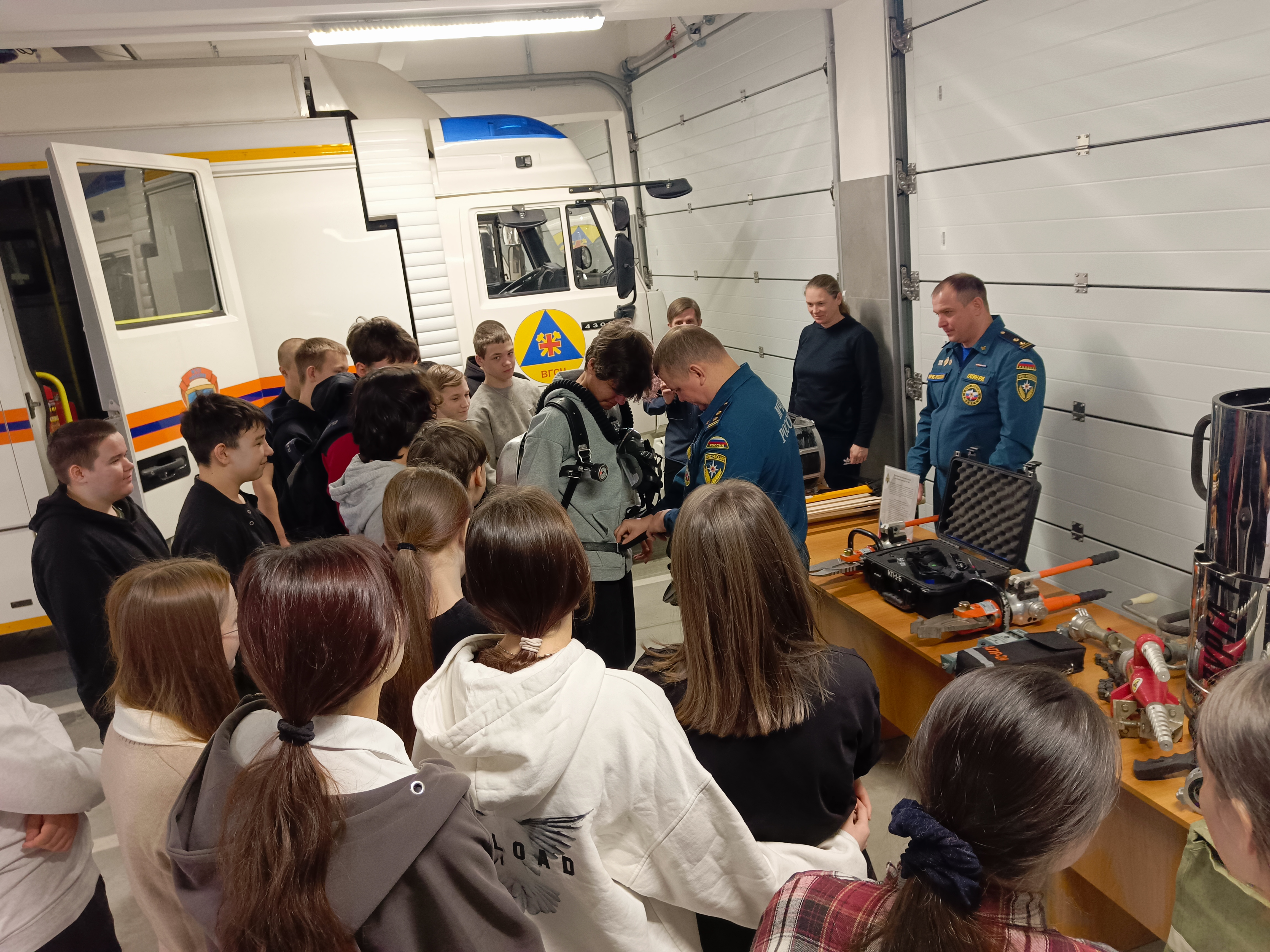 Школьникам не только рассказали о тонкостях работы, но и дали возможность прикоснуться к ней: они изучали специальное снаряжение, оборудование аварийных автомобилей и даже пробовали выполнить сердечно-лёгочную реанимацию на учебном манекене. Особый интерес вызвали дыхательные аппараты, используемые в непригодной для дыхания атмосфере.