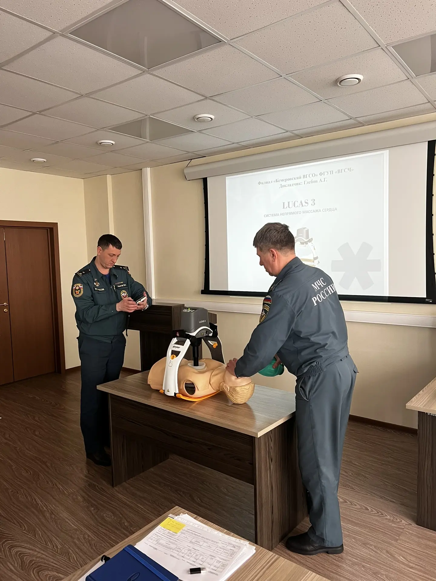Второй день совещания был посвящен не только теоретическим вопросам, но и практической работе. Участники ознакомились с организацией работы медицинских работников и условиями несения службы во 2-м ВГСВ филиала «Новокузнецкий ВГСО», а также прошли процедуру определения тепловой устойчивости.