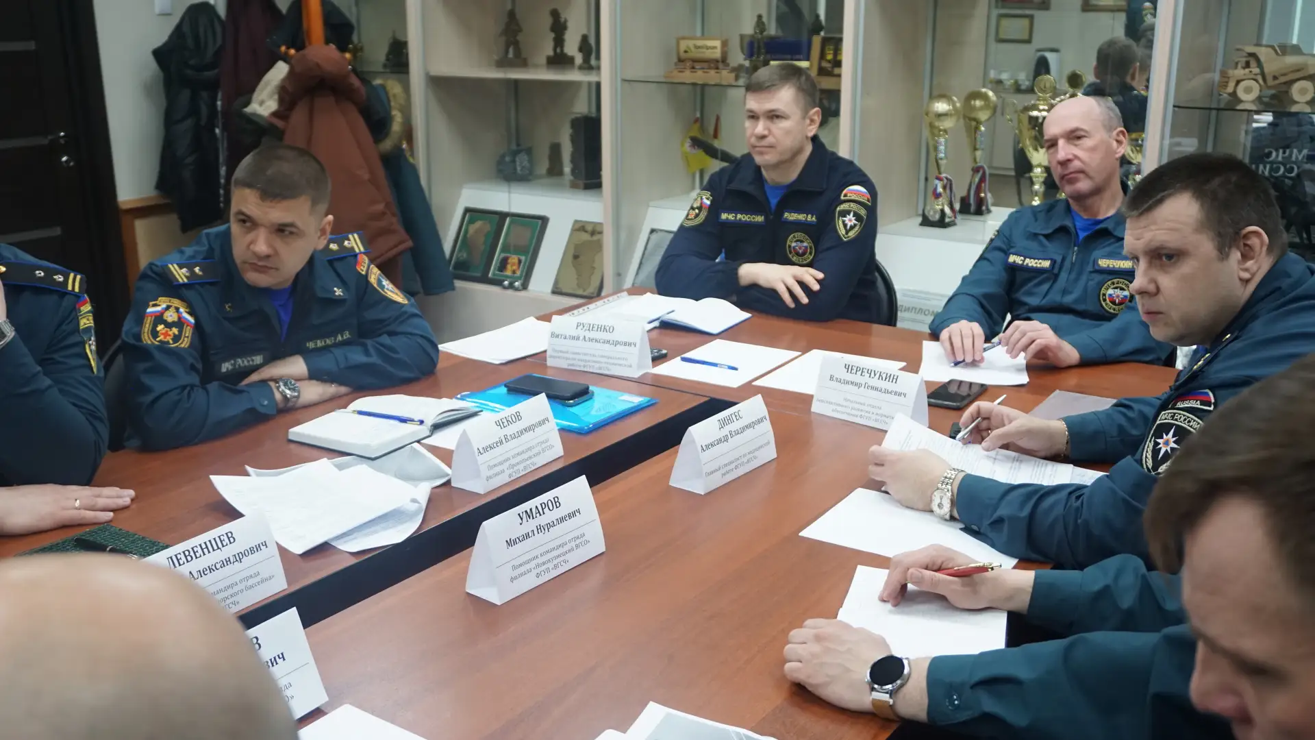 В работе совещания приняли участие первый заместитель генерального директора по оперативно-технической работе В.А. Руденко, начальник отдела перспективного развития и нормативного обеспечения В.Г. Черечукин, главный специалист по медицинской работе А.В. Дингес, а также помощники командиров отрядов в медицинской службе филиалов ВГСЧ.