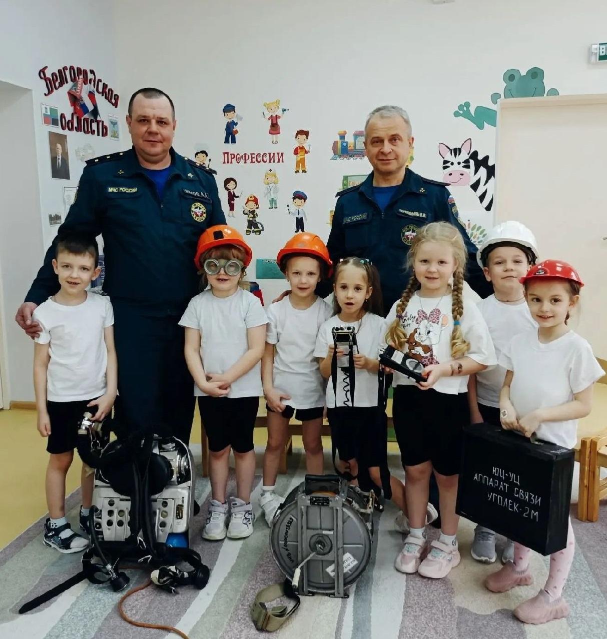 В МБОУ детский сад № 41 «Семицветик» г. Губкина прошли профориентационные мероприятия. В рамках муниципального проекта «Губкинский город профессий» воспитанники группы «Знайки» познакомились с важной и героической профессией - горноспасатель. Встречу провели представители филиала «ВГСО Юга и Центра» ФГУП «ВГСЧ».
