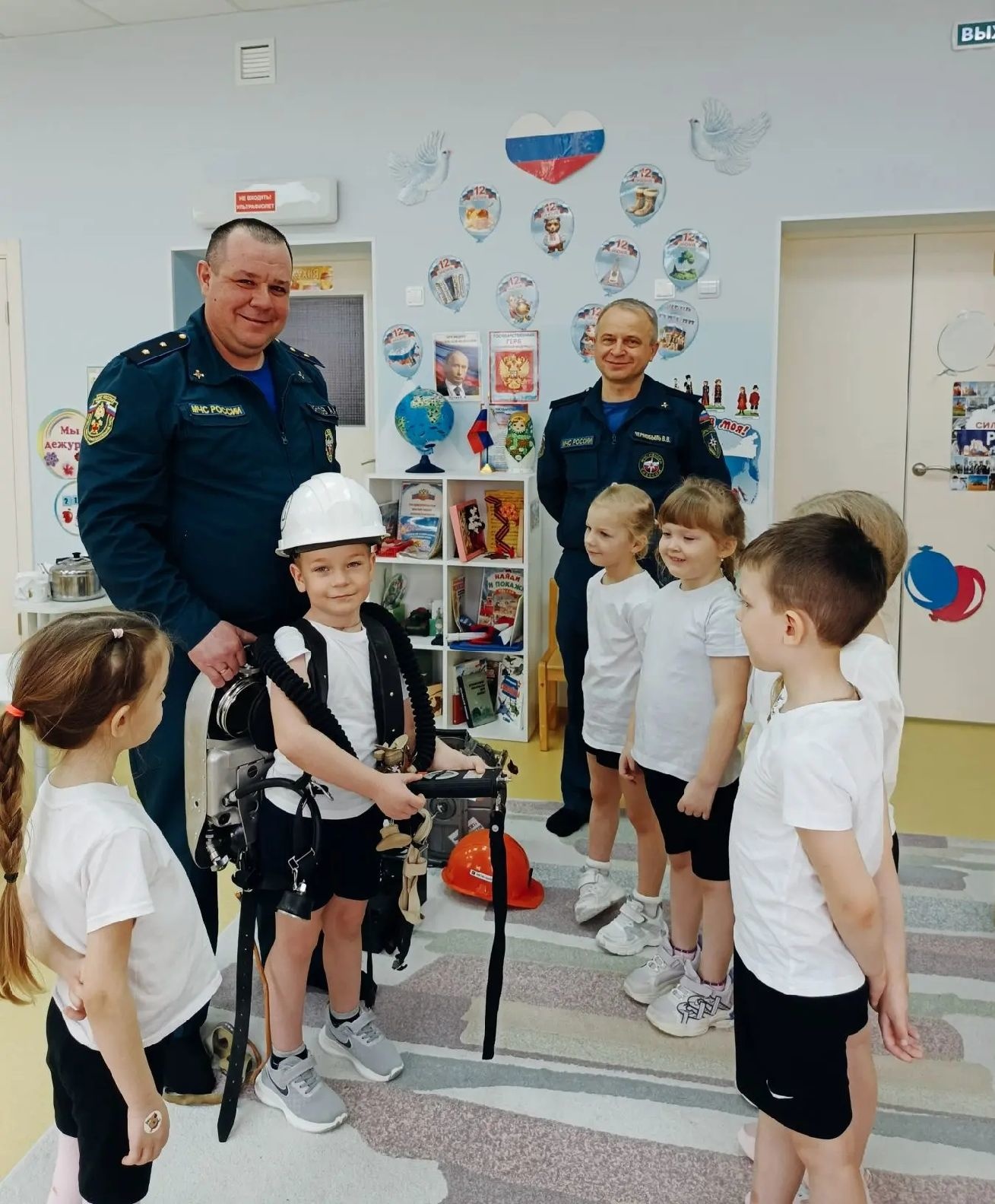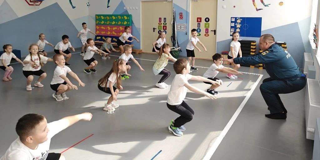 Кроме того, для ребят организовали утреннюю разминку «Зарядка с героем» в рамках реализации проекта «Вместе с Первыми». Гости детского сада показали дошколятам, что быть сильным и ловким - это неотъемлемая часть их благородной профессии.