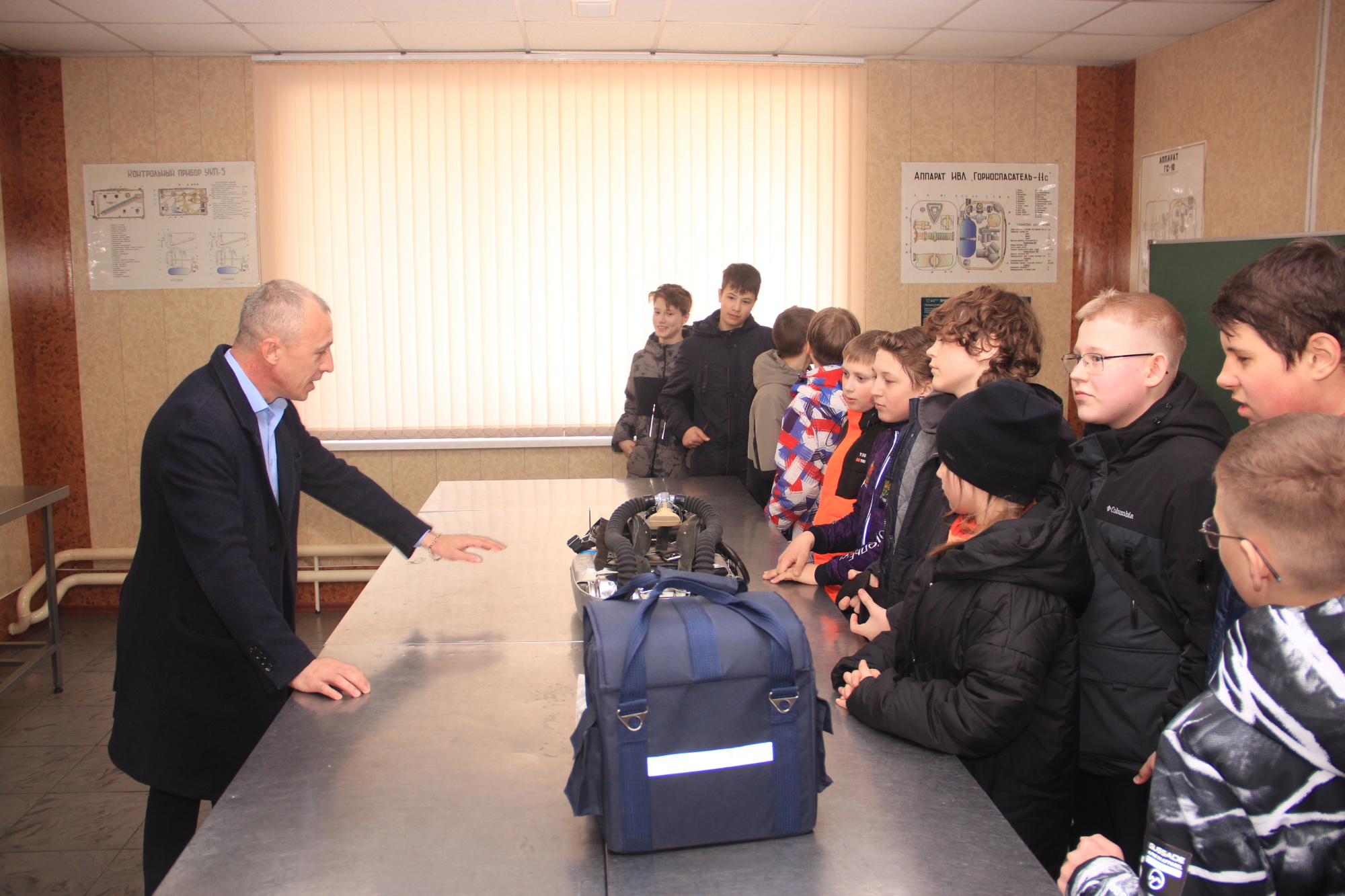 Школьникам рассказали о характере работ, основных обязанностях и профессиональных качествах, необходимых для работы в экстренных условиях. Наибольший интерес вызвала демонстрация специального снаряжения: дети смогли не только увидеть оборудование, но и примерить изолирующий дыхательный аппарат.